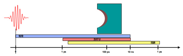 從激發光束到物體吸收光束再到標刻,這個過程是非常快速的。下面這個時間軸就是吸收能量到雕刻的過程。